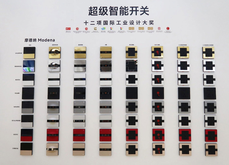 本次获奖的摩德纳系列,其中的超跑特别款超级智能面板,塑造法拉利SP3跑车G3曲率的曲面,以流线型的设计定义指尖上的超跑美学;更实现了 “3 套方案 + 4 个按键 + 12 个场景” 超能智控力。