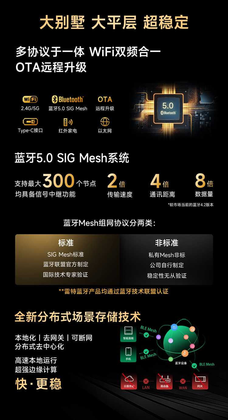 小雷智能家居系统以蓝牙5.0 SIG Mesh组网